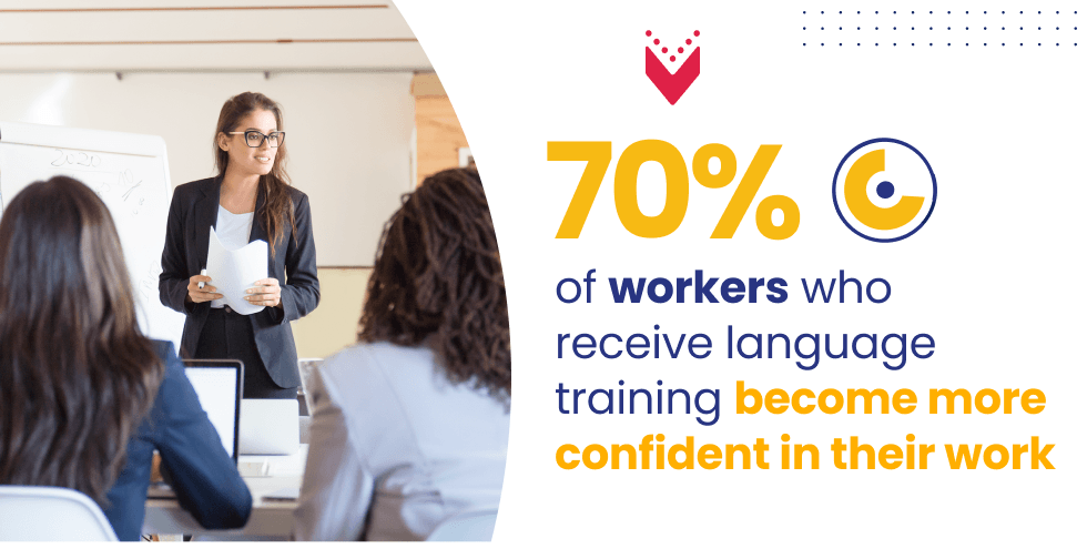 To truly embed language learning into an organization’s DNA, it is crucial to cultivate a culture that values and encourages continuous growth. This involves creating an environment where employees feel supported and motivated to pursue language acquisition. Companies should implement a blended learning approach that combines self-paced online modules with interactive group sessions and one-on-one coaching. Encouraging the use of target languages in informal settings, such as team-building activities or cultural celebrations, is another tactic. By making language learning an integral part of your company’s ethos, you can inspire employees to embrace the challenge and reap the rewards of multilingualism. Remarkably, 70% of workers who receive language training become more confident in their work [2], highlighting the positive impact of corporate language learning initiatives.