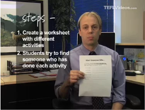 Choose a category to watch experienced EFL teachers demonstrate games and activities, lesson plan ideas, and teaching techniques that you can use with your own English language students.